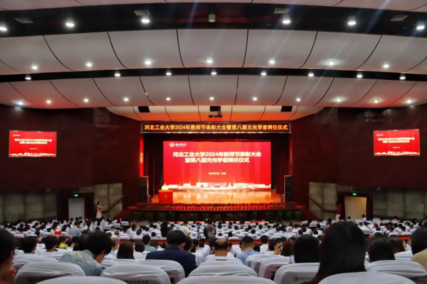 9月10日,河北工業(yè)大學(xué)2024年教師節(jié)表彰大會(huì)暨第八屆元光學(xué)者聘任儀式在北辰校區(qū)大學(xué)生活動(dòng)中心禮堂舉行。學(xué)校黨委副書記賀立軍、趙斌,副校長(zhǎng)馬國(guó)偉、王慧遠(yuǎn)、李子彪、陳鴻雁出席表彰大會(huì)。學(xué)校全體中層干部、教職工代表參加大會(huì),共同見證、傳承師者的光輝與榮耀,慶祝第40個(gè)教師節(jié)的到來(lái)。