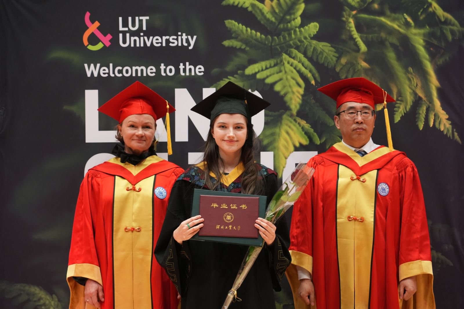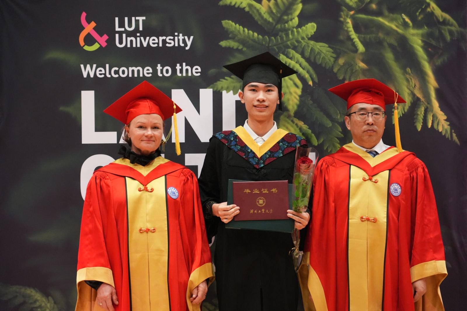 5月5日,河北工業(yè)大學(xué)芬蘭校區(qū)2025屆畢業(yè)典禮在LUT大學(xué)拉彭蘭塔校園舉行。河北工業(yè)大學(xué)校長(zhǎng)王利民、LUT大學(xué)副校長(zhǎng)JAANA SANDSTR?M、中國(guó)駐芬蘭使館公使銜參贊陳會(huì)新、拉彭蘭塔市經(jīng)濟(jì)發(fā)展局局長(zhǎng)DING MA、畢業(yè)生代表張曦元、 CATHERINE BARNES分別致辭。中國(guó)駐芬蘭使館科技事務(wù)參贊王斌、教育事務(wù)一等秘書孫洪志、科技事務(wù)二等秘書李嚴(yán),LUT大學(xué)相關(guān)校領(lǐng)導(dǎo)、學(xué)院院長(zhǎng)、系主任,河北工業(yè)大學(xué)本科生院院長(zhǎng)張小俊、國(guó)際交流與合作處處長(zhǎng)趙穎穎、河北工業(yè)大學(xué)芬蘭校區(qū)輪值校長(zhǎng)張長(zhǎng)庚,中芬教師代表、芬蘭校區(qū)全體畢業(yè)生出席典禮。典禮由芬蘭校區(qū)學(xué)生事務(wù)專員兼教學(xué)秘書陳銘喆和LUT大學(xué)芬蘭校區(qū)事務(wù)協(xié)調(diào)員KATI KANTONEN共同主持。