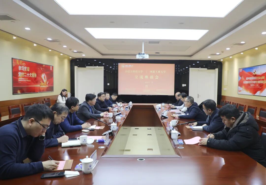 12月22日,內蒙古科技大學黨委書記呼和一行蒞臨河北工業(yè)大學調研交流,學校黨委書記韓旭、副校長江浪參加座談會。