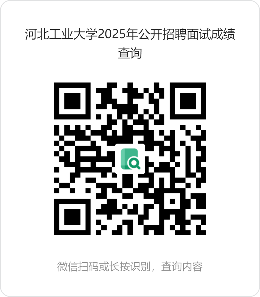 2025年11月15日,河北工業(yè)大學(xué)2025年公開招聘工作人員的面試已結(jié)束。依據(jù)《河北工業(yè)大學(xué)2025年公開招聘工作人員公告》中有關(guān)總成績合成和確定體檢、考察人選的規(guī)定,現(xiàn)將進(jìn)入下一階段人員名單予以公布(見附件)。所有參加面試的考生可通過微信掃描下方二維碼自行查詢總成績結(jié)果,請考生及時查看并知悉。